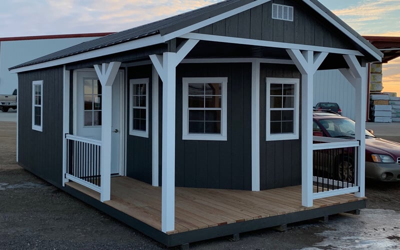 Cottage Porch. In addition to our Basic Porch, we are now offering a Cottage Porch. Our quaint Cottage Porch is a wraparound style that adds space and charm to a storage building. You can use it to stash muddy boots and to relax on a comfortable summer day (think Adirondack chairs and a glasses of lemonade).
